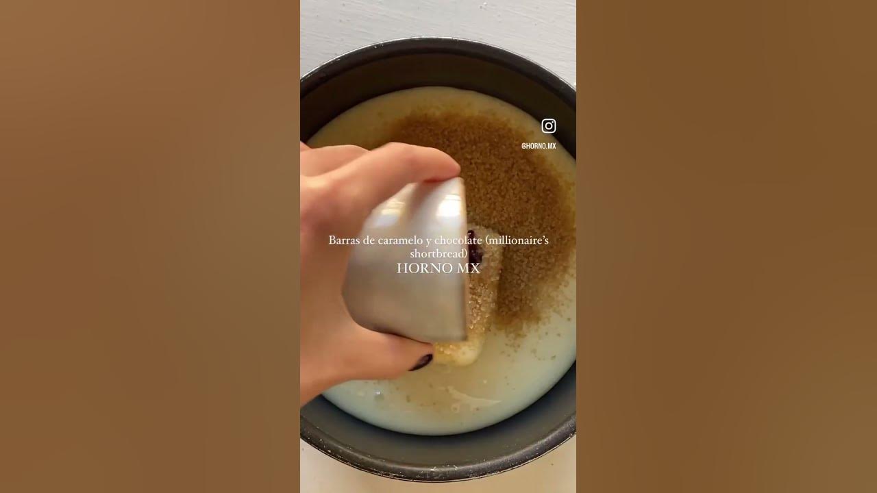 aluminio para darle forma. Horneamos durante 30 minutos. Para el caramelo cocinamos leche condensada, mantequilla, azúcar moreno, jarabe de maíz o miel